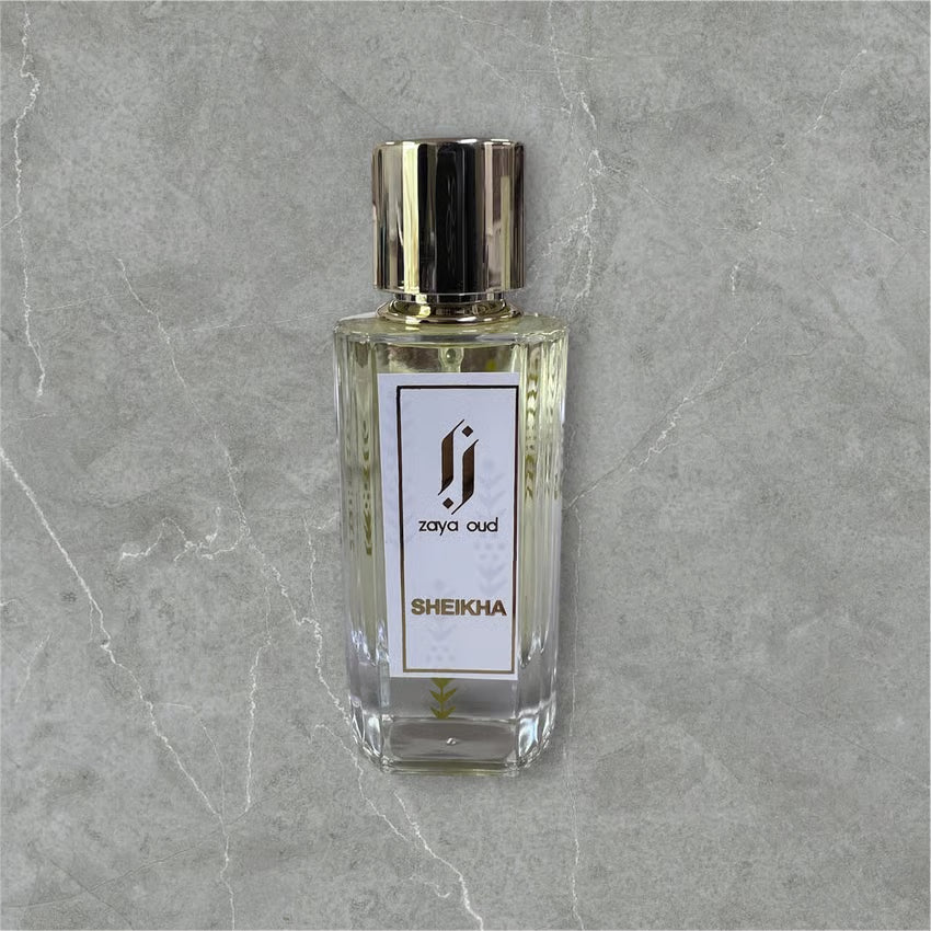 Sheikha Perfume is a blend of Sheikha dehn oud, amber, and sandalwood.